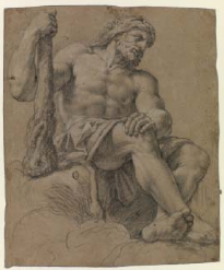 Michel Corneille le père (1603-1664), “Hercule”, pour le plafond de la galerie de l’hôtel Amelot de Bisseuil à Paris, Pierre noire avec rehauts de craie blanche, BnF, département des Estampes et de la photographie